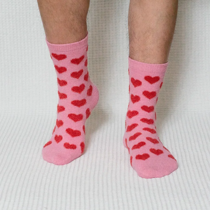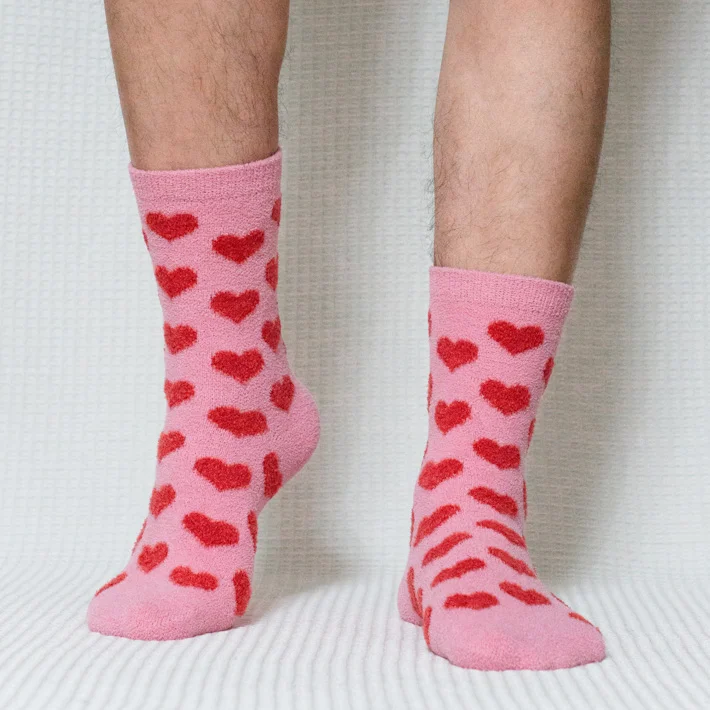 Infuse your wardrobe with affection by wearing our men’s pink red heart quarter socks. Embrace the season in these cozy companions adorned with charming red hearts, offering daily comfort in soft pink. Designed for both autumn and winter, these quarter socks blend love and style effortlessly. Elevate your casual look with the thin, cozy fit and make a heartfelt statement with every step. Experience warmth and fashion in one with our heart-patterned socks.
